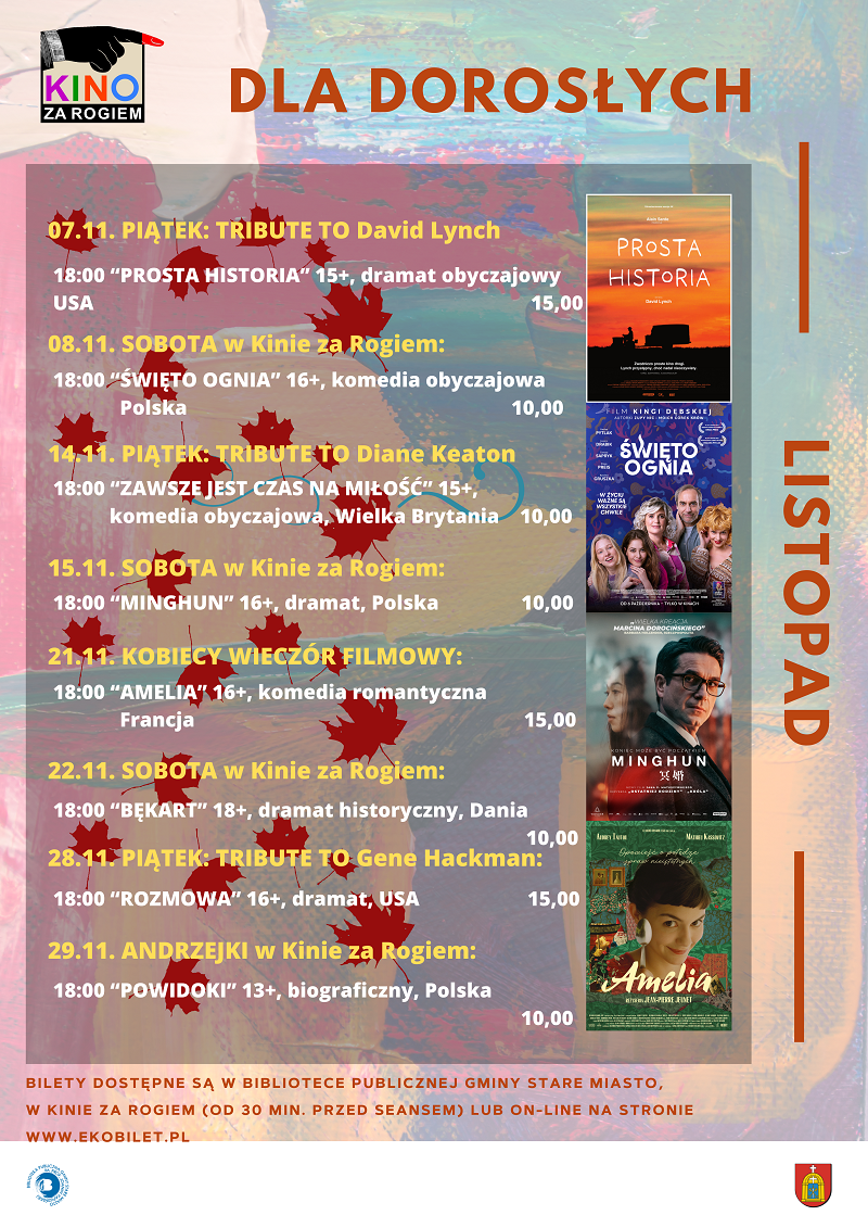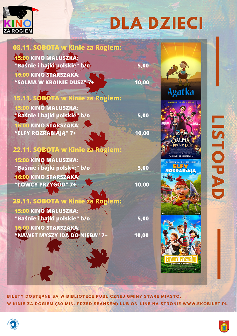 Bibliotece Publicznej Gminy Stare Miasto lub pół godziny przed seansem w kinie.
